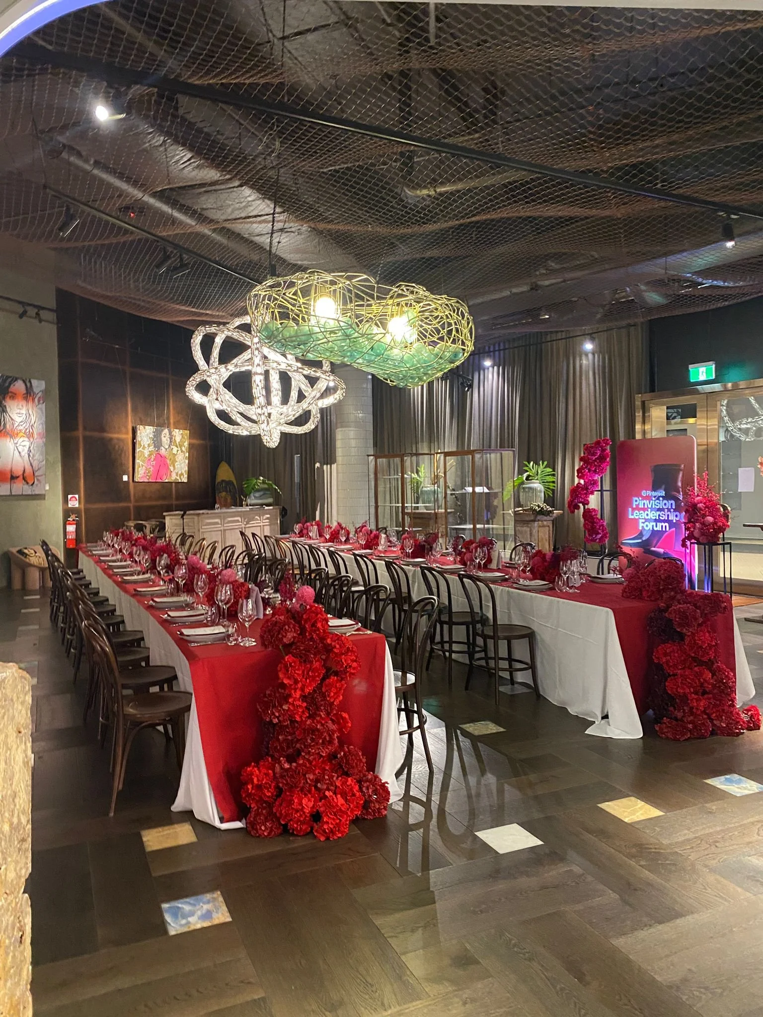 Due to the time poor nature of their guest list, the event needed to offer them a unique, exclusive experience to make the event unmissable. We settled on a three part structure, that incorporated networking, a seated dining experience curated by the one and only, Kylie Kwong, and a keynote speech by Professor Joel Pearson on the future of AI. Set amongst the sculptural & architectural space that is Machine Hall, with signature pops of Pinterest Red to contrast the industrial setting.